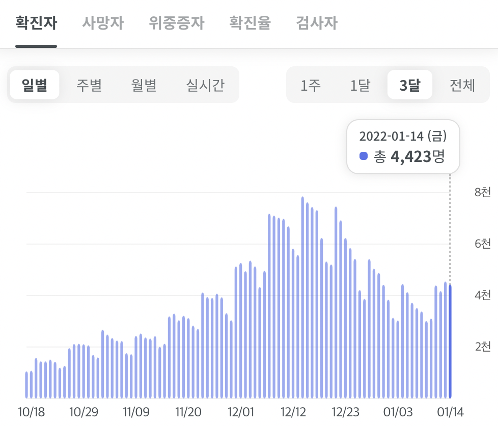 | Subject | 확진 4423명, 위중증 이틀째 600명대..사망 22명, 54일만에 최소 |
