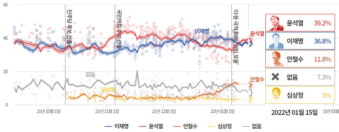 Subject   윤석열 44.4%-이재명 35.8%…안철수, 10%대 무너진 9.5%