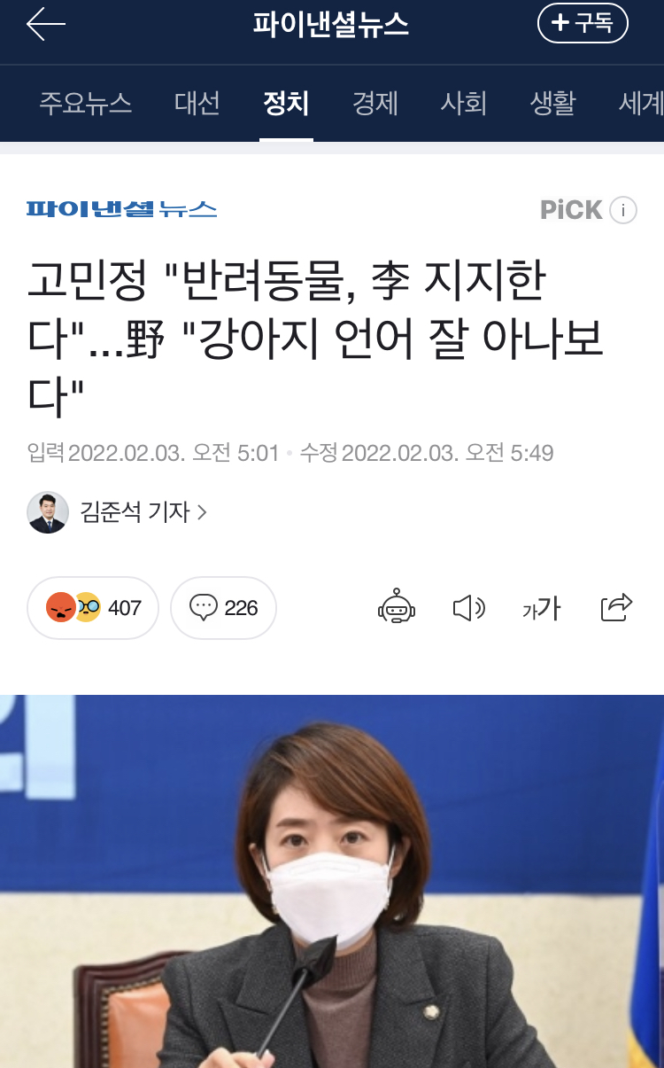 | Subject | 고민정 "반려동물, 李 지지한다". |
