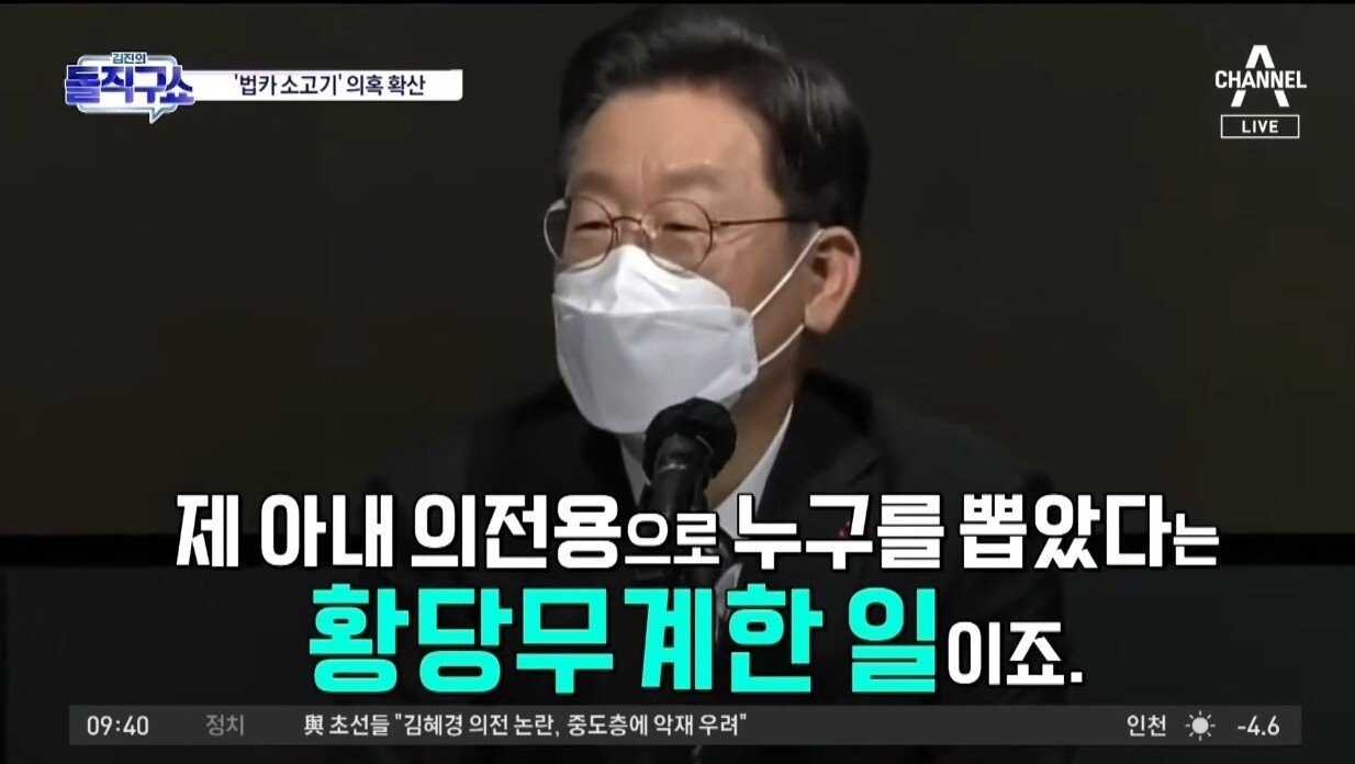 "이재명 '김혜경 비서 채용 가짜뉴스' 글삭튀" 정도면?
