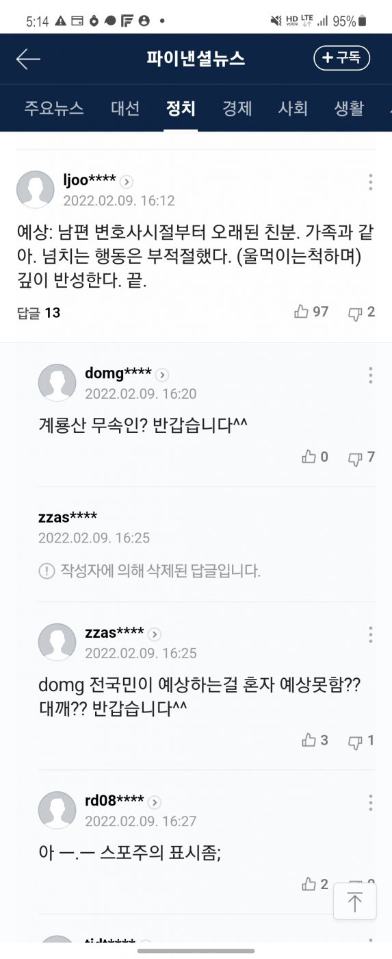 https://news.naver.com/main/read.naver?mode=LSD&mid=sec&sid1=001&oid=020&aid=0003410072 권혁기 민주당 선거대책위원회 공보부단장은 이날 브리핑을 통해 “김혜경 씨가 오후 5시 서울 여의도 중앙당사에서 기자회견을 연다”고 전했다. 이 후보는 동행하지 않는다. 김 씨는 일문일답도 진행한다는 계획이다. (후략) 큰 기대는 안 되네요... 과연 서울대 교수님의 저 법칙을 깰 수 있을까요? 0