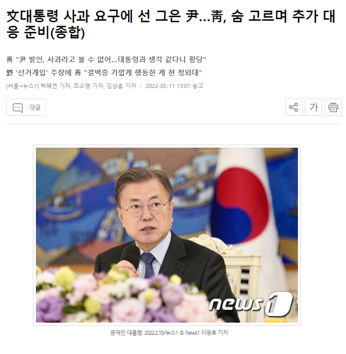 정치文대통령 사과 요구에 선 그은 尹…靑, 숨 고르며 추가 대응 준비(종합) 13 |