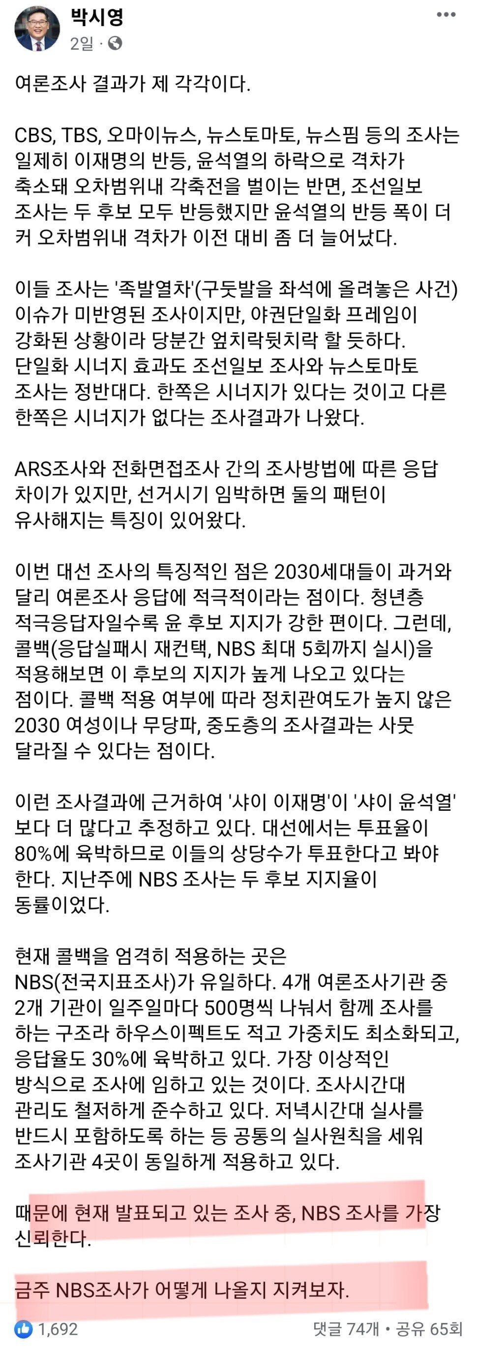 Subject   윤석열·이재명 지지율, 일주일 만에 오차범위 밖 격차로 벌어졌다[NBS]
