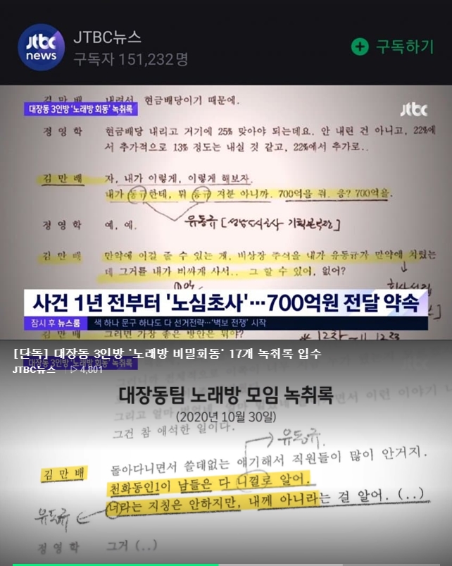 Subject   국민의힘 "대장동 녹취록 공개…이재명 의혹 더 커져"