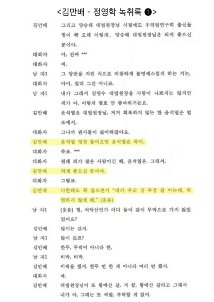 공개된 녹취록을 보면 별 건 없는 것 같네요. 김만배는 양승태와 절친한 사이임을 과시하고 있고, 예전에 윤석열이 양승태를 수사하면서 법조와 척을 져서 영장 칠 때마다 판사들이 죽인다는 얘기인 듯.