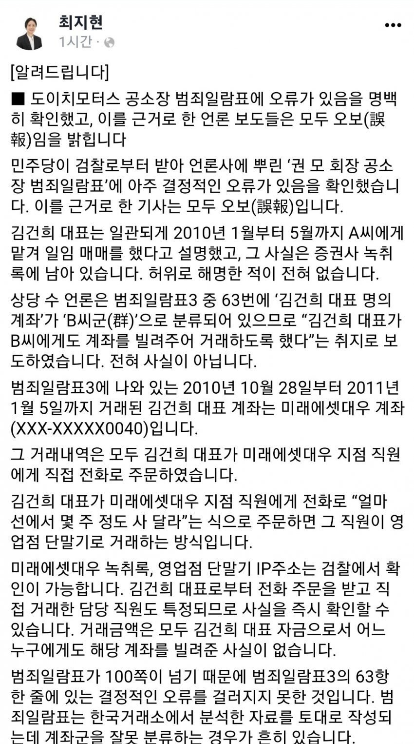 '도이치모터스 건은 2013년 금감원과 경찰에서 이미 무혐의 결론이 났다'