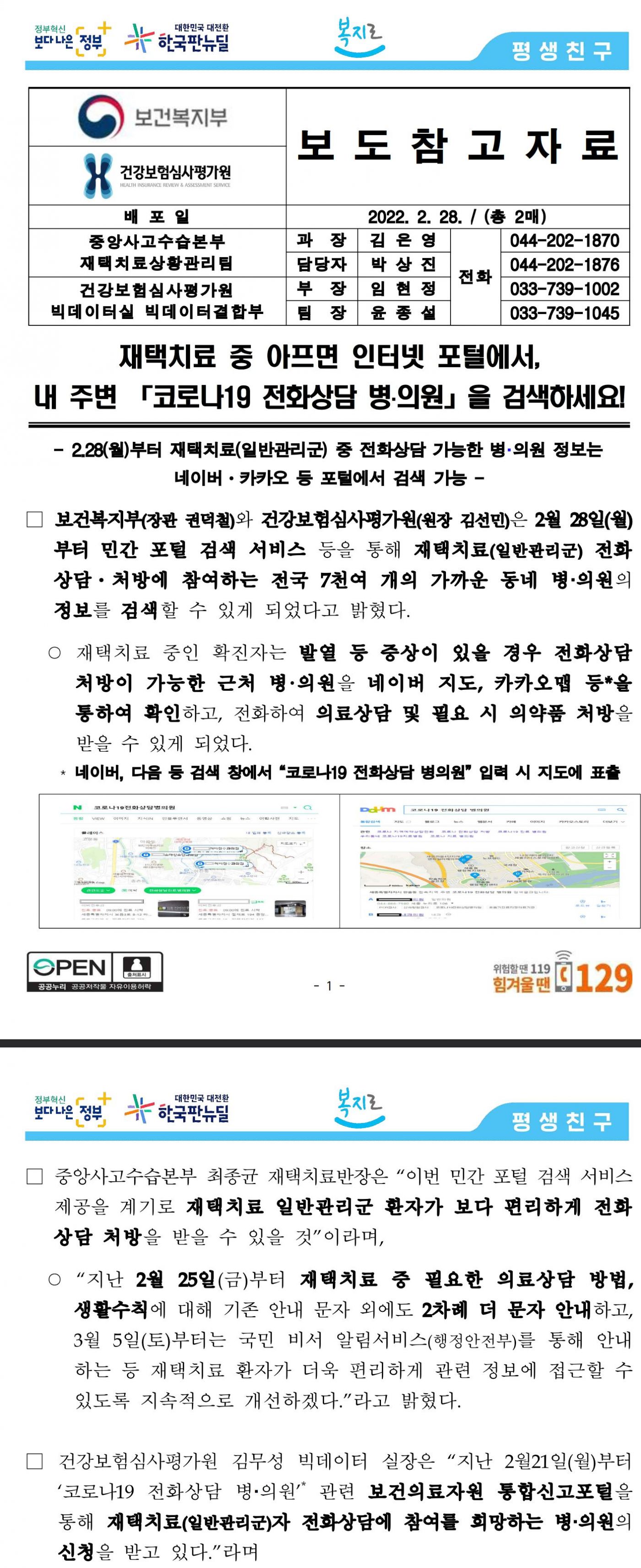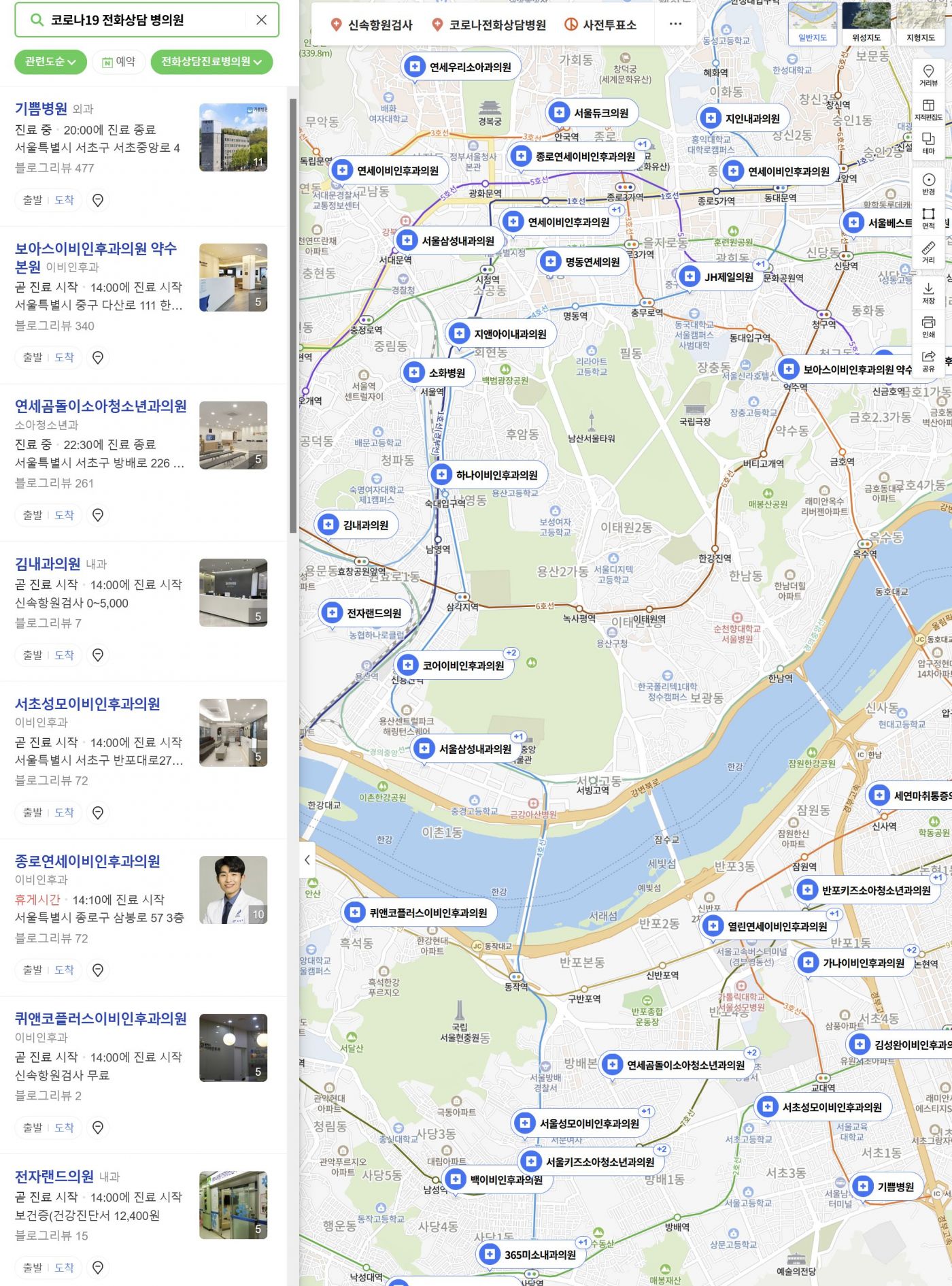 오늘부터 네이버, 카카오 등에서 "코로나19 전화상담 병의원"으로 검색이 가능하다고 하니 참고하세요.