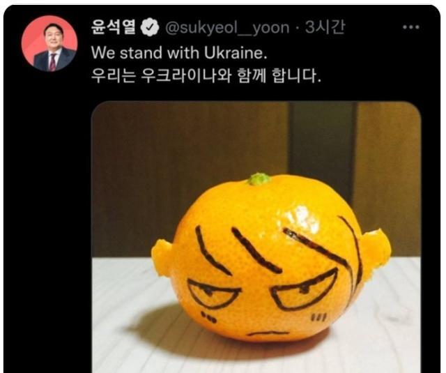 Subject   윤석열의 우크라이나 응원 '귤 트윗'에 "전쟁이 장난인가" 비판 봇물