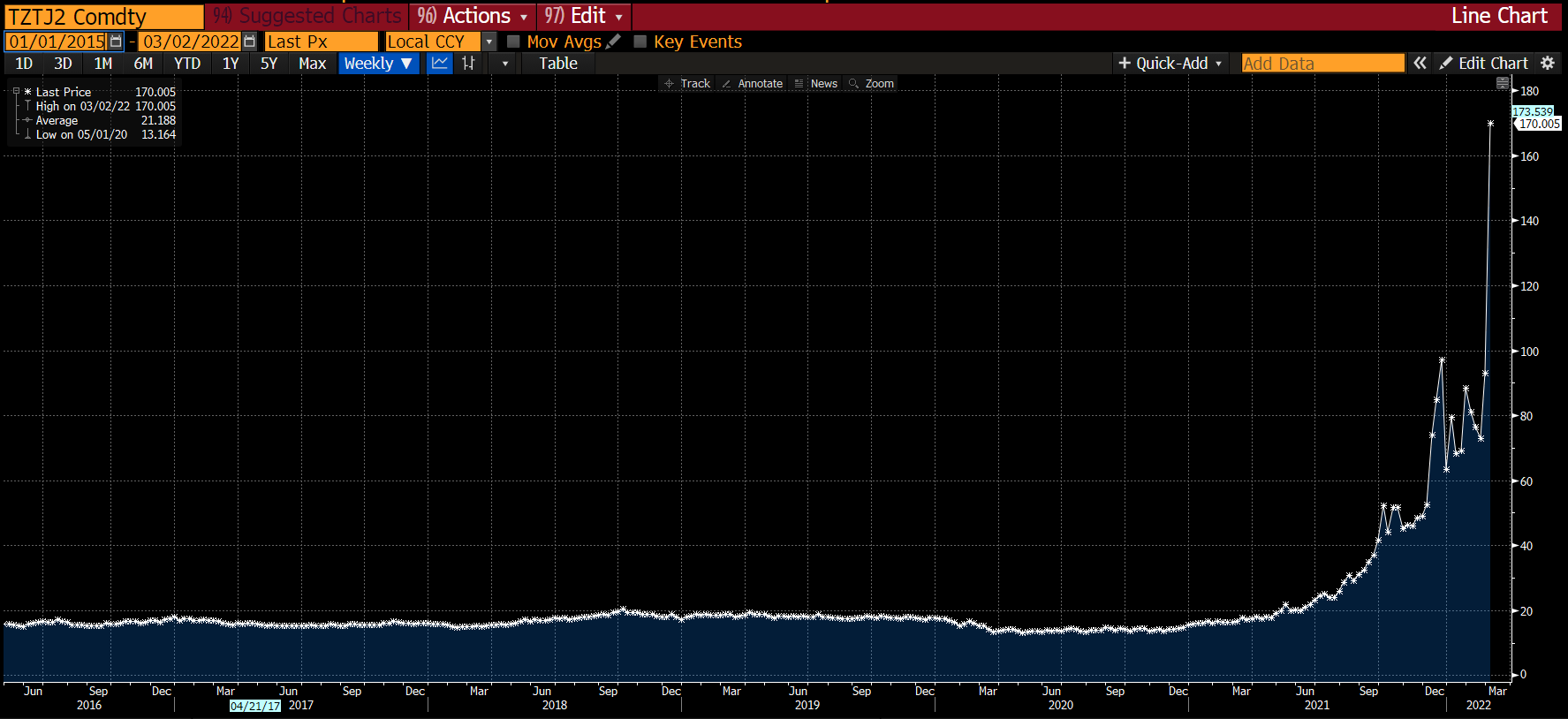 차트는 유럽 천연가스 벤치마크인 TTF입니다. 유럽에는 가스 요금이 4배 넘게 오른다고 고지한 곳도 있다고 합니다.