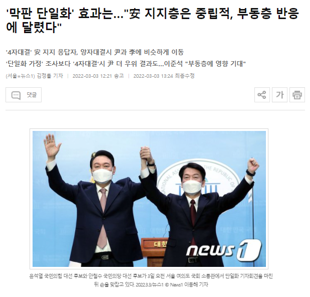 Subject   '막판 단일화' 효과는…"安 지지층은 중립적, 부동층 반응에 달렸다"
