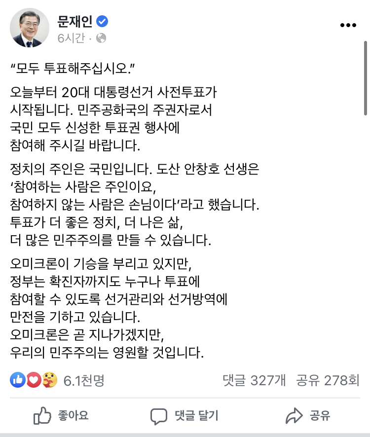 | Subject | 野 "문대통령 사전투표 메시지서 '민주' 반복…선거개입" |