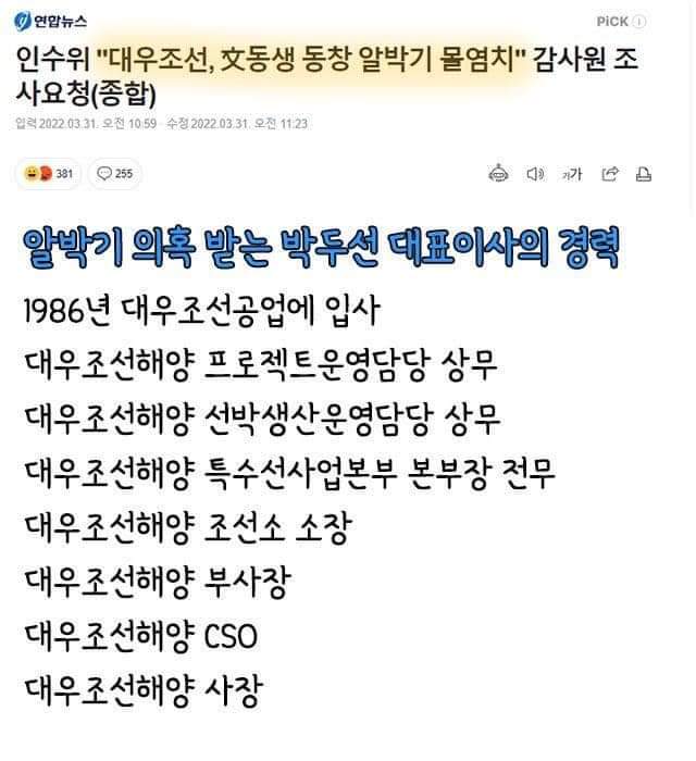 Subject   대우조선해양 박두선 대표이사 선임, 왜 '알박기 인사' 논란되나