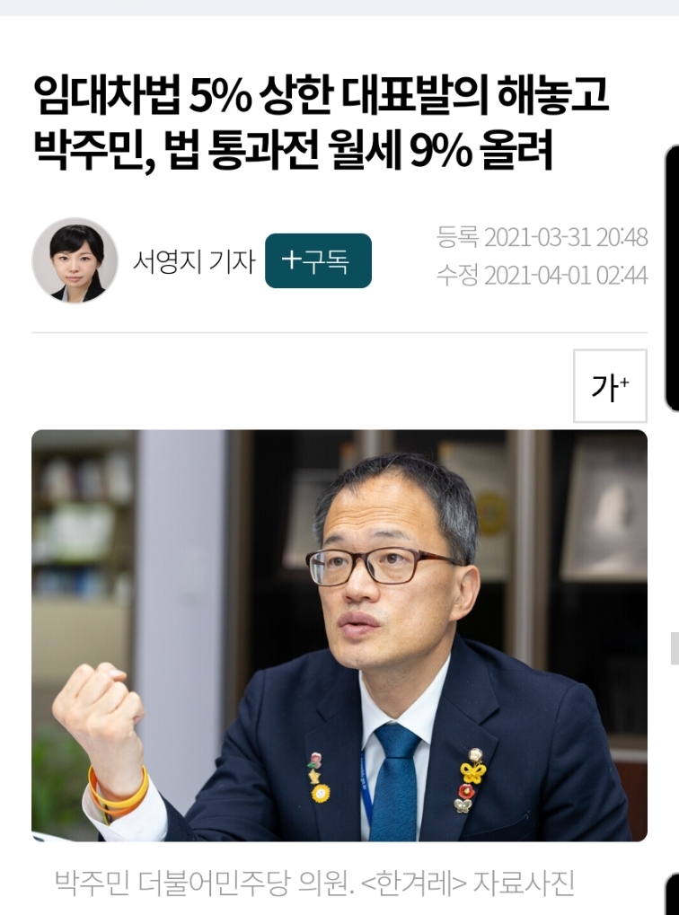 Subject   임대차 3법 보강 예고한 민주당…신규 계약도 상한제 전망