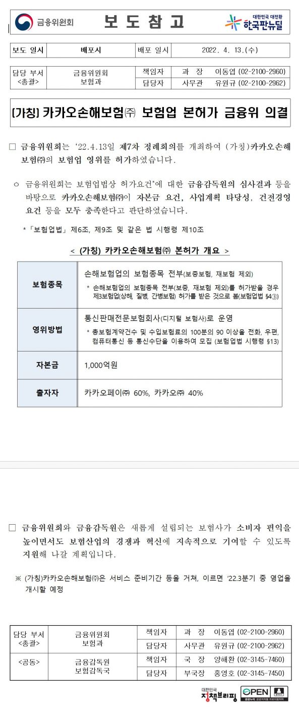 | Subject | 카카오 손해보험업 진출한다…공식 허가받아 |