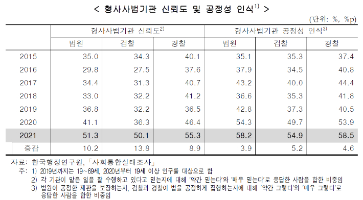 Subject   검찰, 형사사법기관 신뢰도·공정성 6년 연속 꼴찌