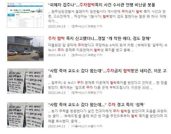 https://www.news1.kr/articles/?4656346 커뮤니티 사이트에 올라왔던 주차 협박 쪽지를 받은 네티즌이 경찰에 신고 했는데, 오히려 경찰이 주차협박한 피고소인을 옹호하는 듯한 발언을 해서 이슈였다고 합니다 ㄷㄷ 저도 오늘 기사를 보고 알았는데 경고 처리를 받았다고....! 아무래도 피고소인을 옹호하는듯한 발언은 정말 조심했어야 하는게 아닌가... 0