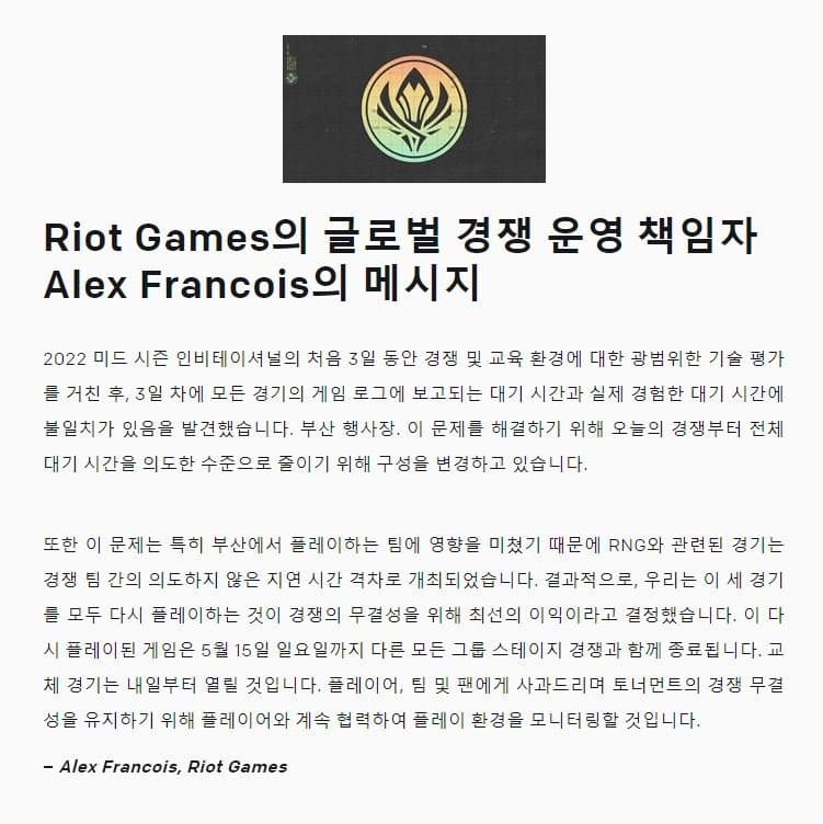 게임[MSI] RNG, 그룹 스테이지 3경기 무효화...재경기 선언 10 |