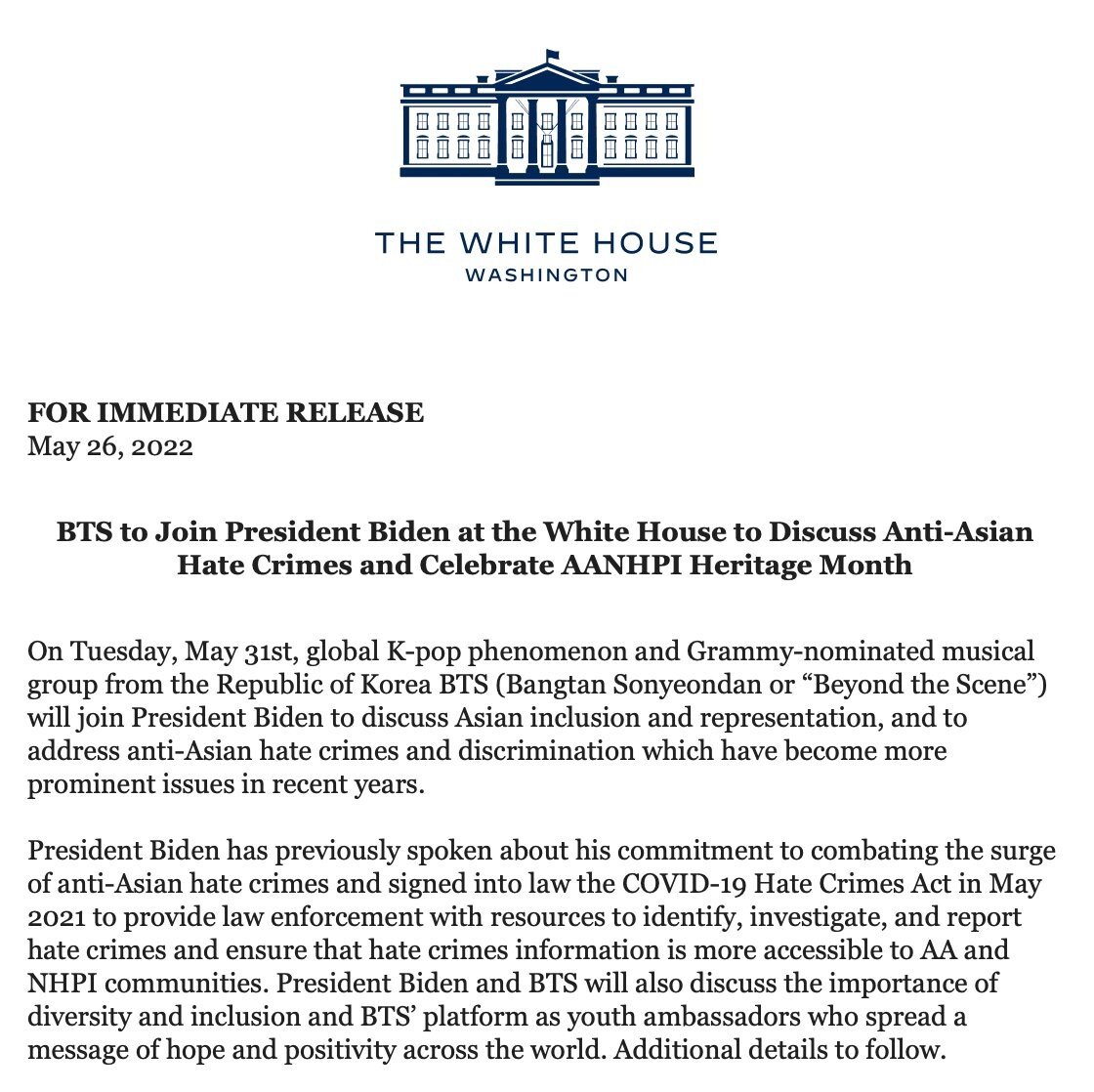 방송/연예바이든, 백악관서 BTS 만난다…"反아시안 증오범죄 퇴치 논의" 4 |