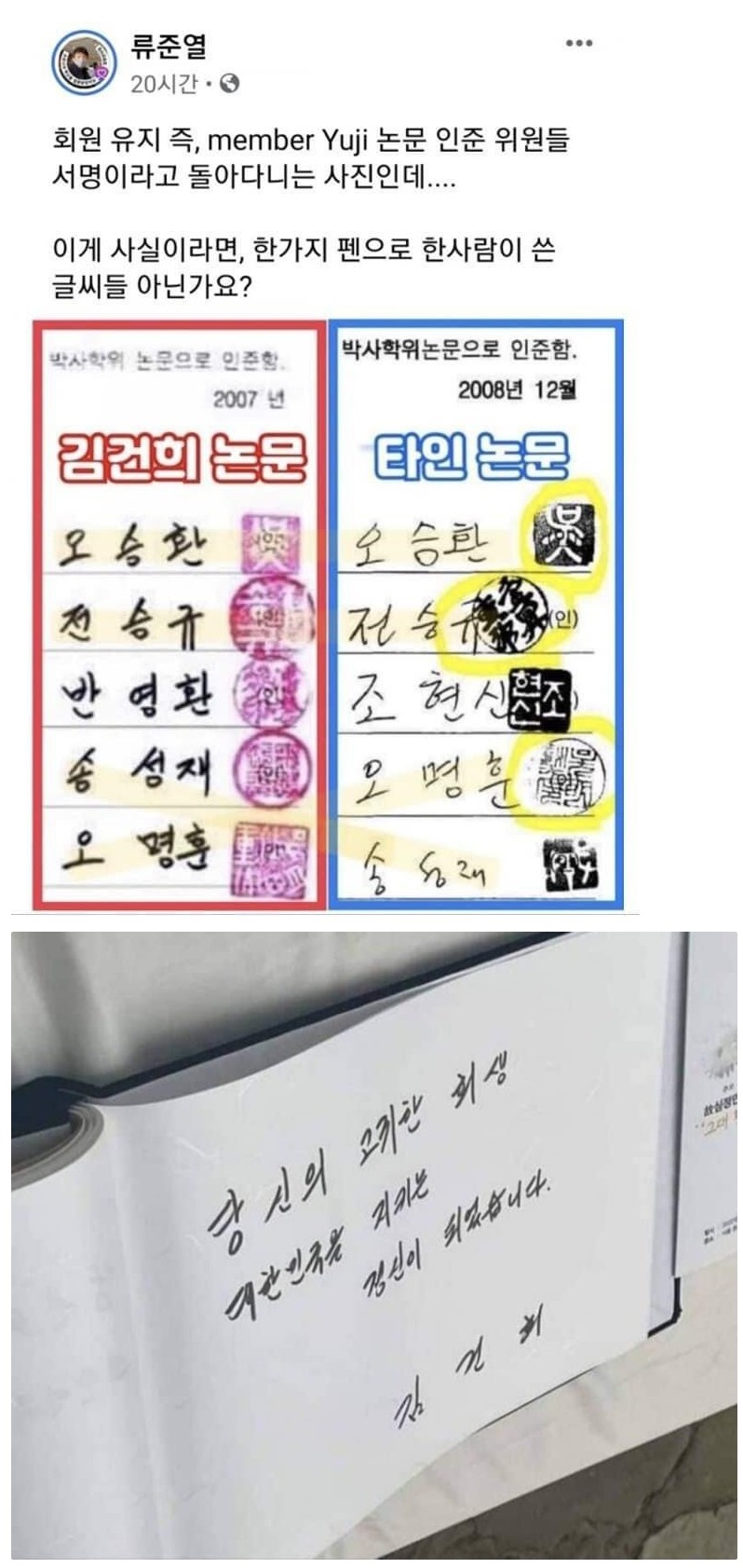 김건희 여사 논문 '표절 아님' 발표했는데..누가 설명 좀 해주세요 https://news.kbs.co.kr/mobile/news/view.do?ncd=5523757 김건희씨 논문이 표절이 아니라는 국민대 최종 심사결과 보도는 다들 접하셨겠습니다만 이번 보도는 '표절이 아니다'라는 내용보다도 심사결과의 형식에 집중한 보도입니다. 국민대에서 배포한 자료의 수준이 조금 심각하네요. 문서 제목도 없을 뿐 아니라 누가 조사했는지에 대한 내용도, 어떻게 심사했는지에 대한 내용도, 이 자료가 국민대의 누구의 명의로 작성된 문서인지에 대한 내용도 없네요. 재조사위원회의 입장인지, 연구윤리위원회의 입장인지 그것도 아니면 대학본부차원의 입장인지도 적혀있지 않습니다. 연구윤리위원회에 물어도, 대학본부에 물어도 누가 작성했는지 어떻게 작성되었는지 대답해주지 않는다고 하고 당시의 연구윤리가 어떠했는지 당시의 연구윤리와 비교하여 김건희 씨의 논문 수준은 어떠한지에 대한 내용도 없습니다. 국민대의 눈물겨운 노력이 이제는 애처롭네요... 영부인의 모교되기가 이렇게도 힘겹읍니다. 0