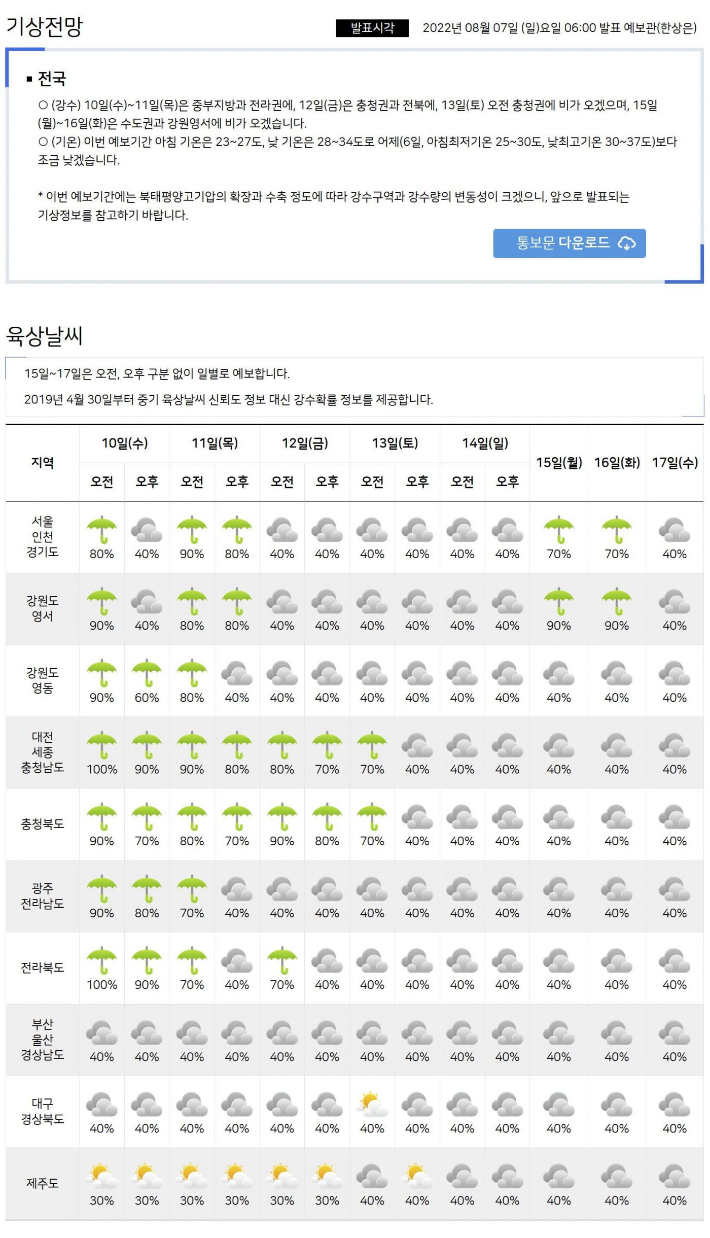 | Subject | 입추 지나 '장마' 돌아온다…중부지방 다음주 내내 많은 비 |
