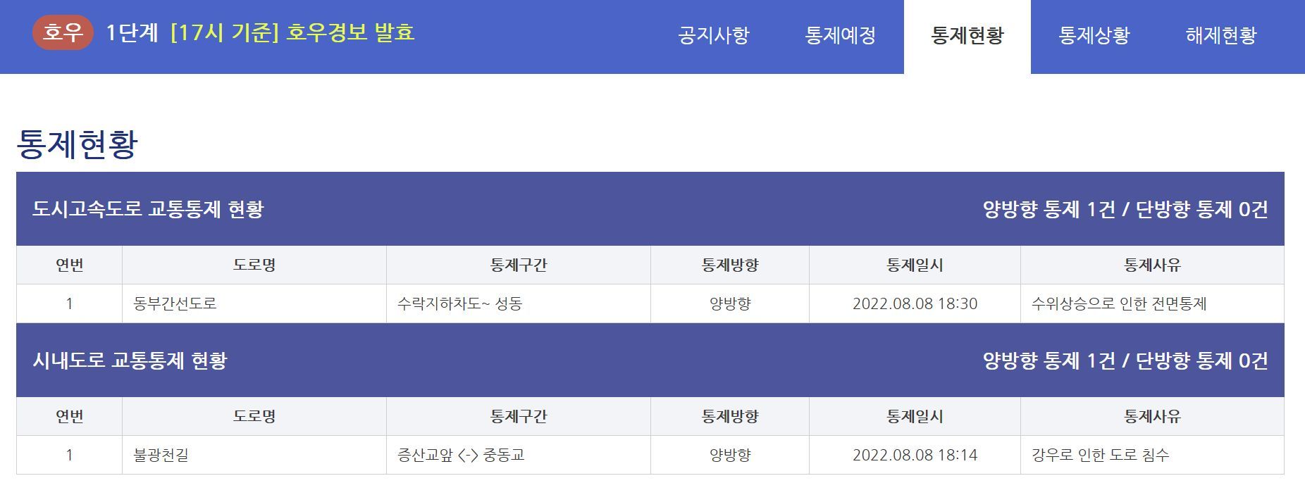 | Subject | 서울 집중호우로 동부간선도로 전 구간 전면 통제 |
