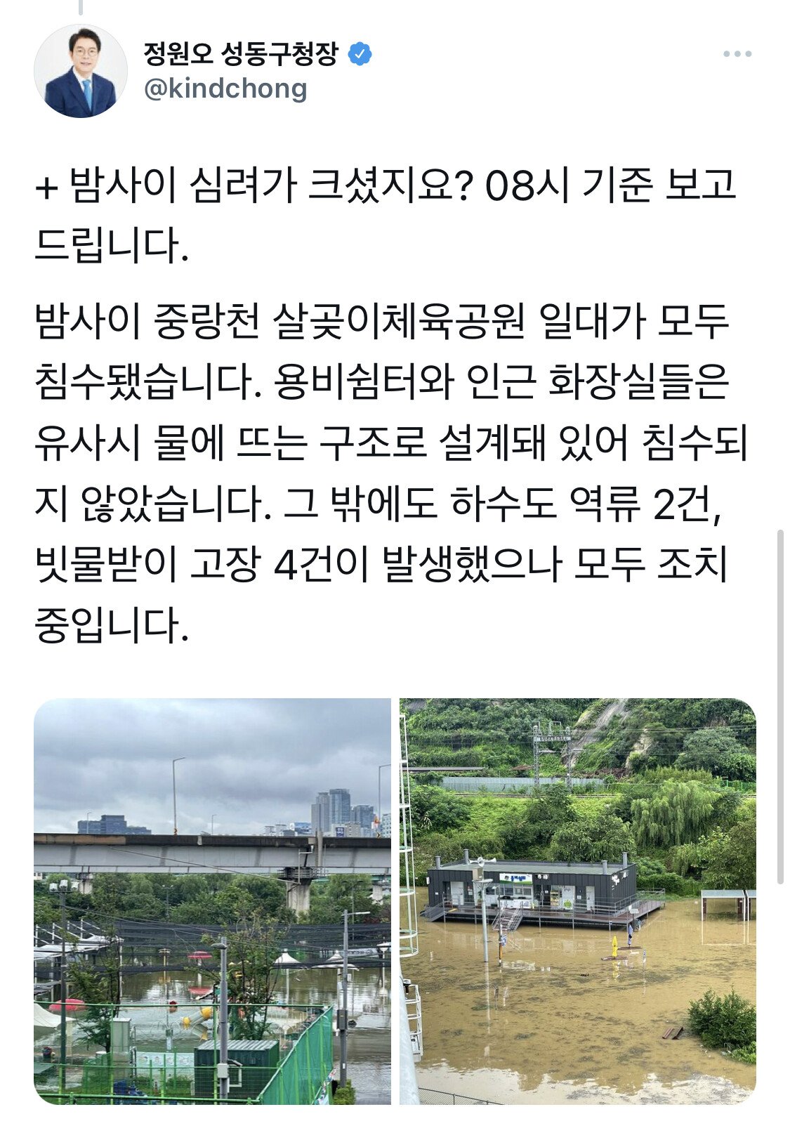 폭우로 사람 죽는데…마포구청장 "비오는날 전 꿀맛♡"