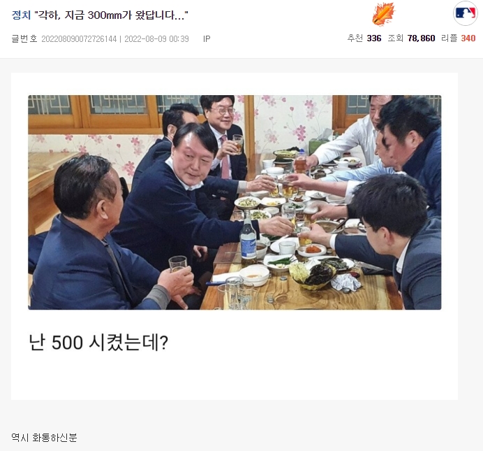 퇴근하면서 침수되는 걸 봤다는 말만 안했어도 ㅎㅎㅎ
