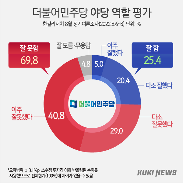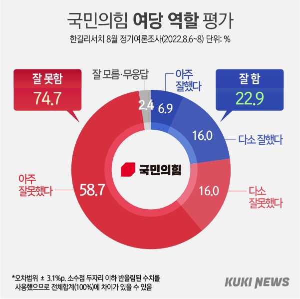 국민 10명 중 7명 “여야, 제 역할 못해” 부정평가 https://www.kukinews.com/newsView/kuk202208090189 쿠키뉴스 정말 듣보잡에 별볼일 없는데라고 생각했는데 한길리서치에 이번에 의뢰한 질문문항중에 꽤 의미있는 질문 문항이 있었군요?? 4점척도로(매우잘함/다소잘함/다소못함/매우못함) 국정지지율 묻듯 여야를 4점척도로 평가해달라고 국민들에게 물어봤을때 여당이 다소 더 부정적으로 평가되기는 하였으나 여/야 할것없이 70%이상의 부정적인 평가를 받았다는 이야기. 여당지지자의 과반이상이 여당에대해 부정적으로 평가(57.2%)했고 야당지지자의 과반이상이 야당에대해 부정적으로 평가(52.8%)했다.. 요것도 좀 특이한것 같읍니다. 내가 지지하는 정당이 잘 못하고 있다는 의견이 과반을 넘는다는것도... ㅎㅎ 우리가 뭐 이런 결과가 나올꺼라는걸 느낌적인 느낌으로는 알고있었으나 막상 숫자로 확인하니 또... 신기하군요. 0