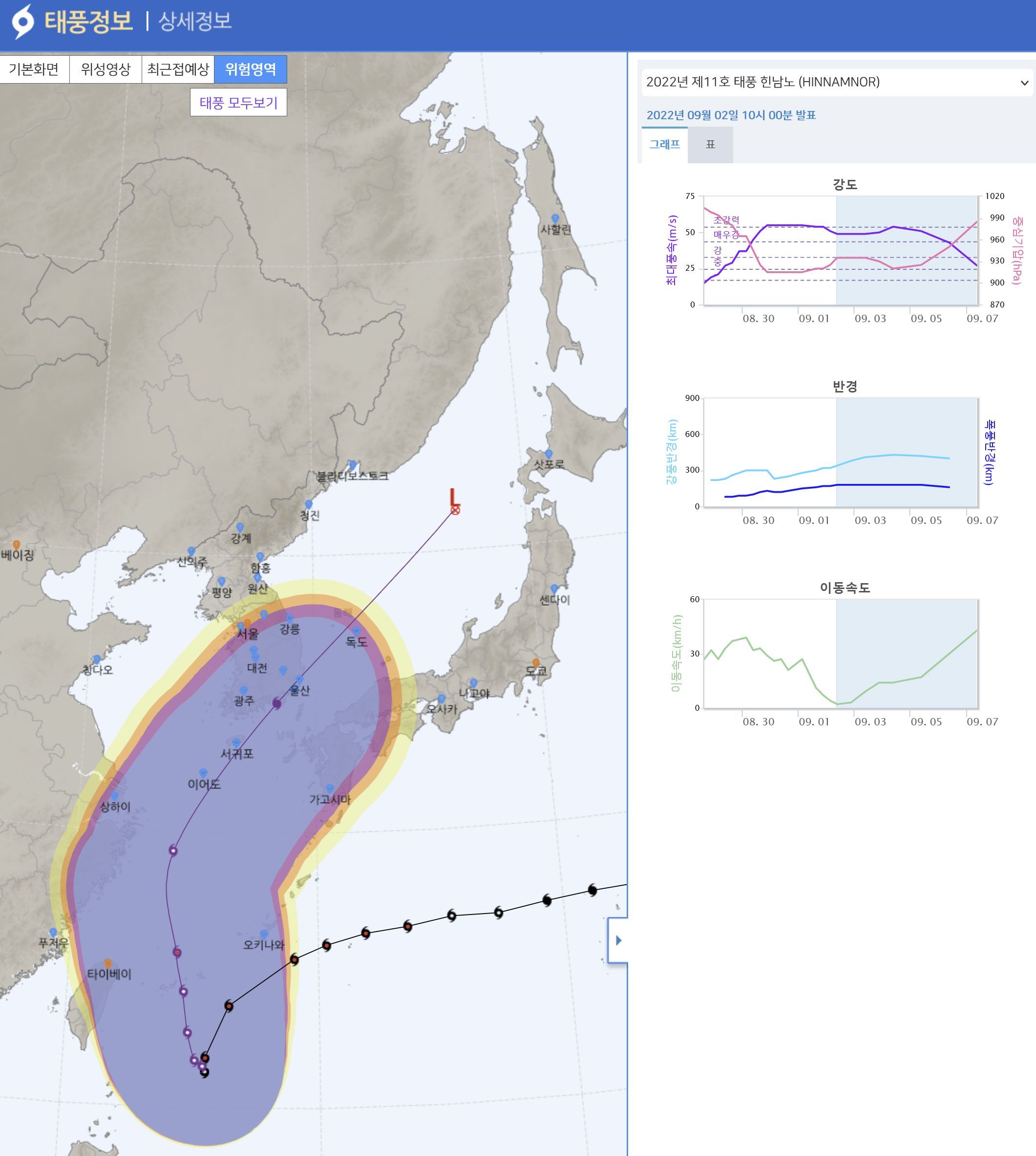 31183 기타힌남노, 6일 오전 상륙…지난달 집중호우 때와 비슷한 폭우(종합) 9 다군 22/09/03 4014 0