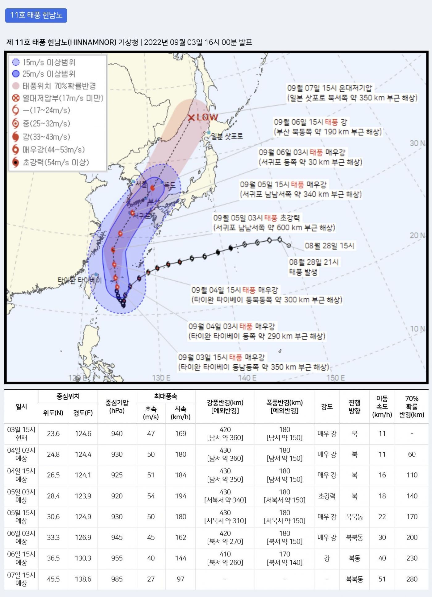31183 기타힌남노, 6일 오전 상륙…지난달 집중호우 때와 비슷한 폭우(종합) 9 다군 22/09/03 4014 0