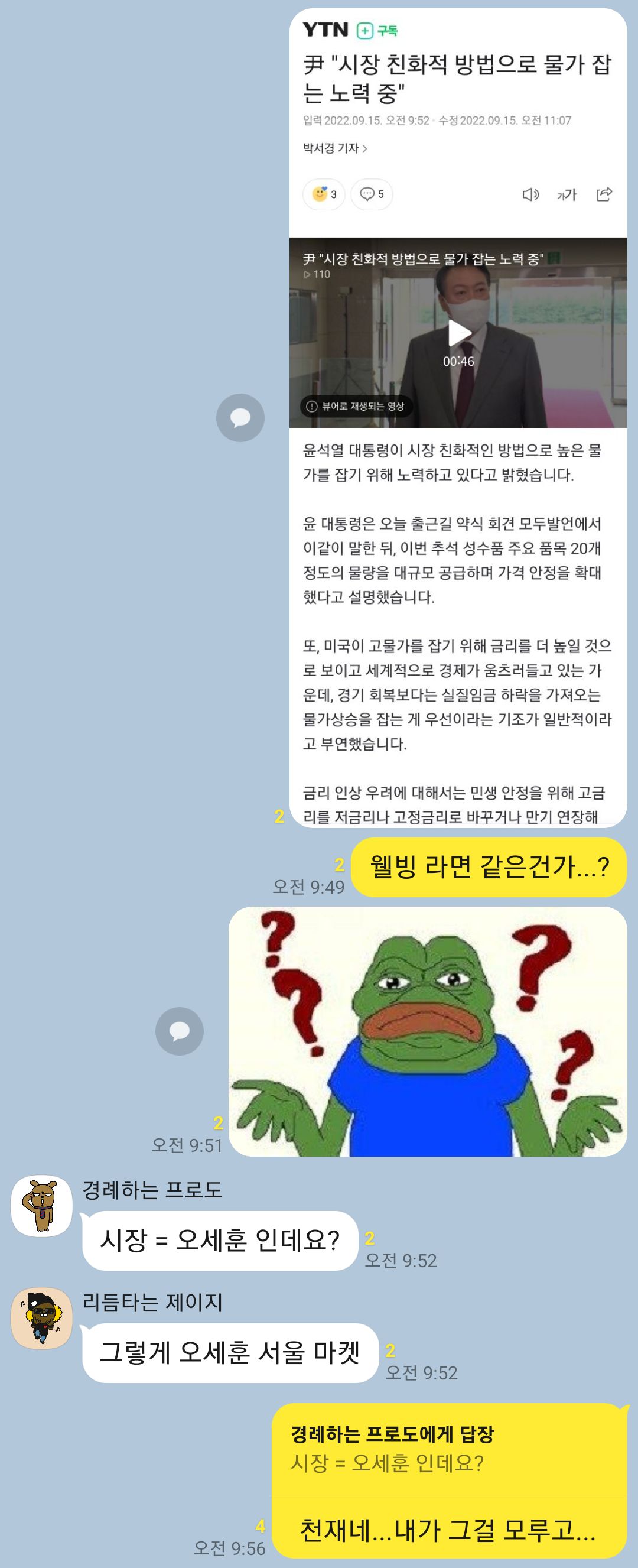 31323 정치尹 "시장 친화적 방법으로 물가 잡는 노력 중" 15 알탈 22/09/16 3517 0