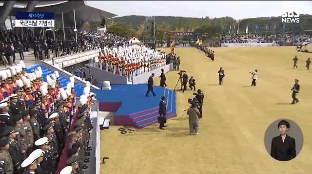 최근 국군의날 행사에서 3군 병사들이 우르르 대통령 주변으로 몰려가 박수치는 모습이
