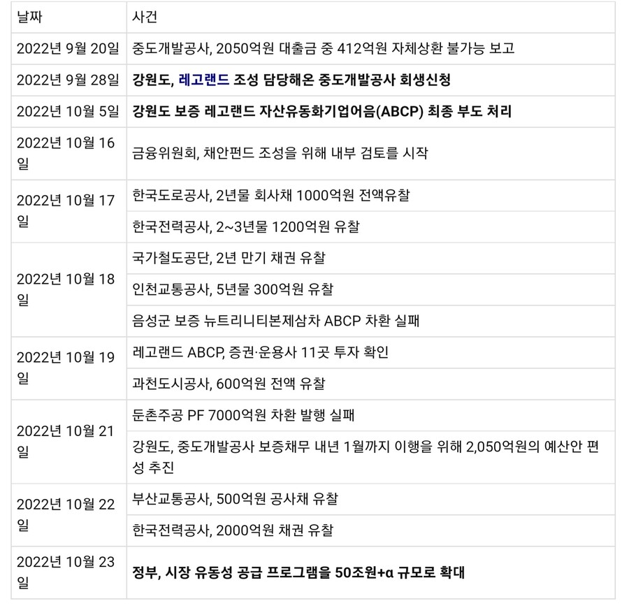 3. 레고랜드 사태로 지방광역시의 채권 신뢰도가 의심받음 + 채권사던 다른 시장참여자들이 "야, 일단 멈춰봐 시전"