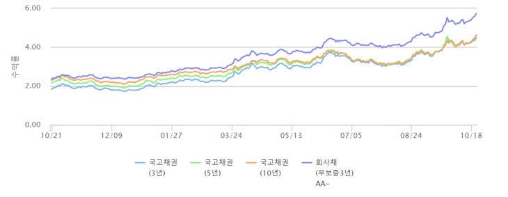 3년만기 국고채 4.2%, AA- 회사채 5.19%…"회사채 시장 사실상 조기 영업종료"