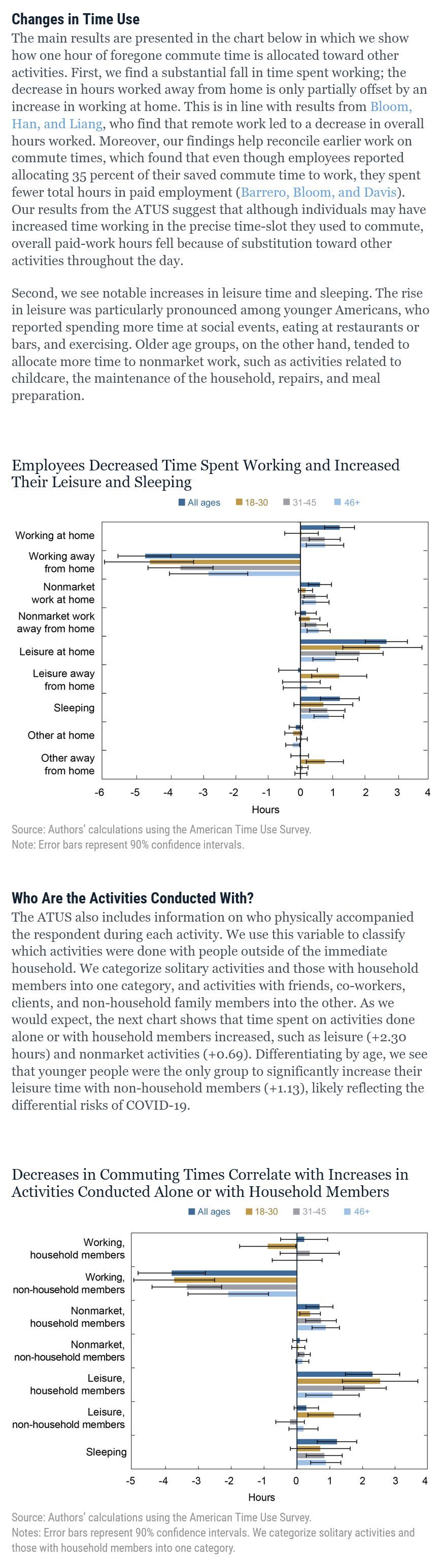 https://www.yna.co.kr/view/AKR20221017078800091 https://www.yna.co.kr/view/AKR20221017078900091 https://www.yna.co.kr/view/AKR20221017079100091 https://www.yna.co.kr/view/AKR20221017079000091 https://libertystreeteconomics.newyorkfed.org/2022/10/what-have-workers-done-with-the-time-freed-up-by-commuting-less/ 일단 통근 시간 줄면 잠은 더 잘 수 있는 것으로. 잠을 더 잘 수 있으면 건강에 좋고, 평균 수명도 늘지 않을까요? :) 0