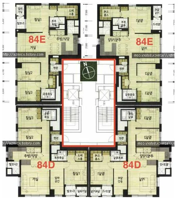 84는 맞은편 집 주방창문과의 거리가 3m 미만인것같은데...(주방의 폭이 3m인데, 그것보다 짧아보이네요)