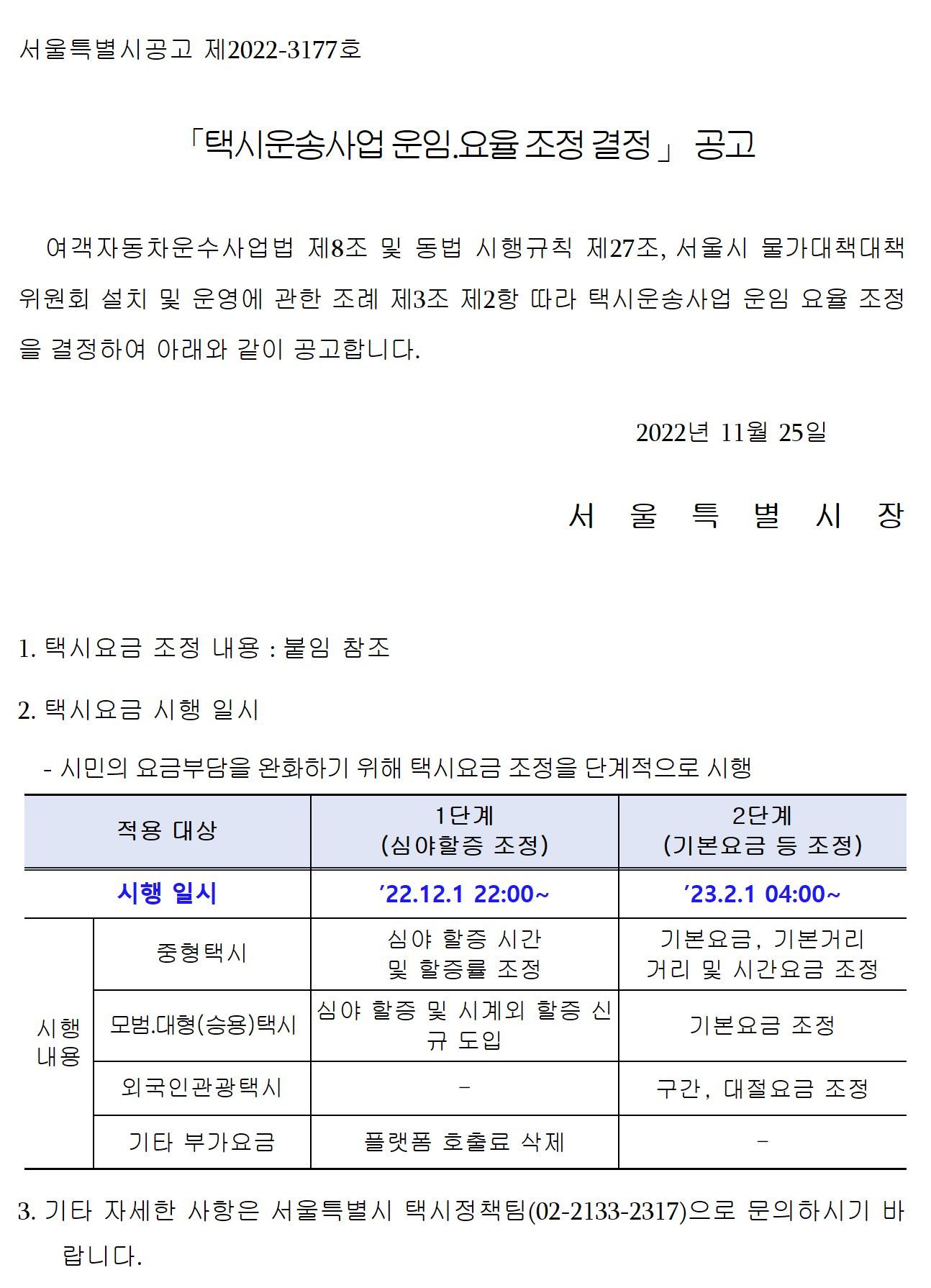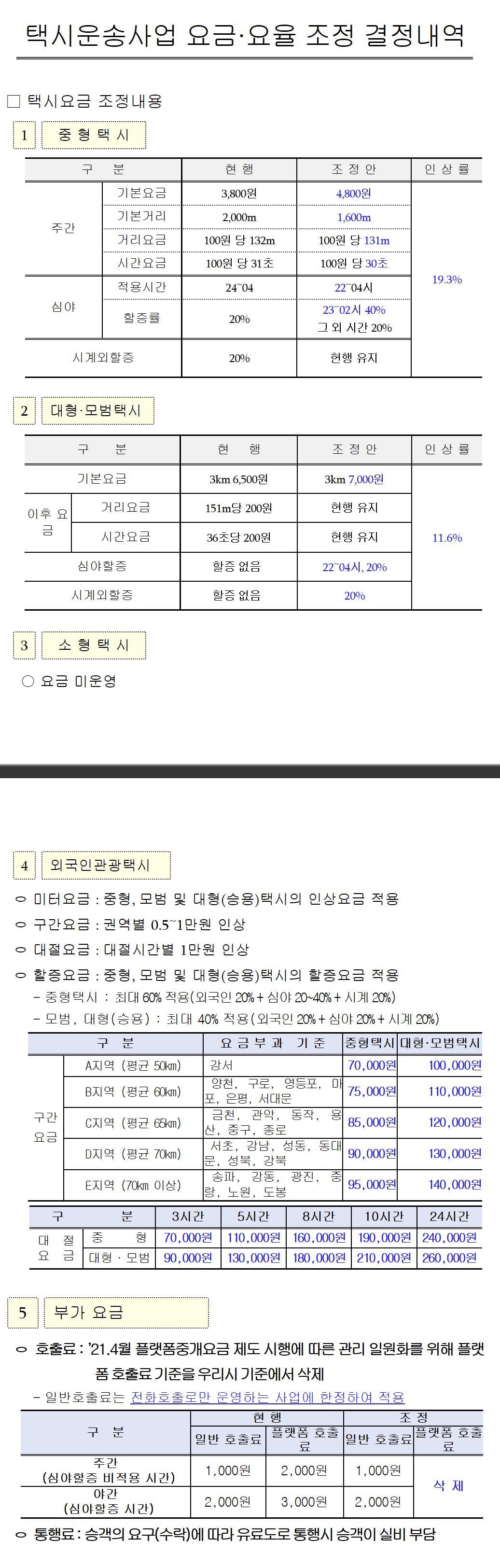 기본요금도 오르고, 할증 시간대도 바뀌고, 22:00~04:00 에는 40% 할증됩니다.
