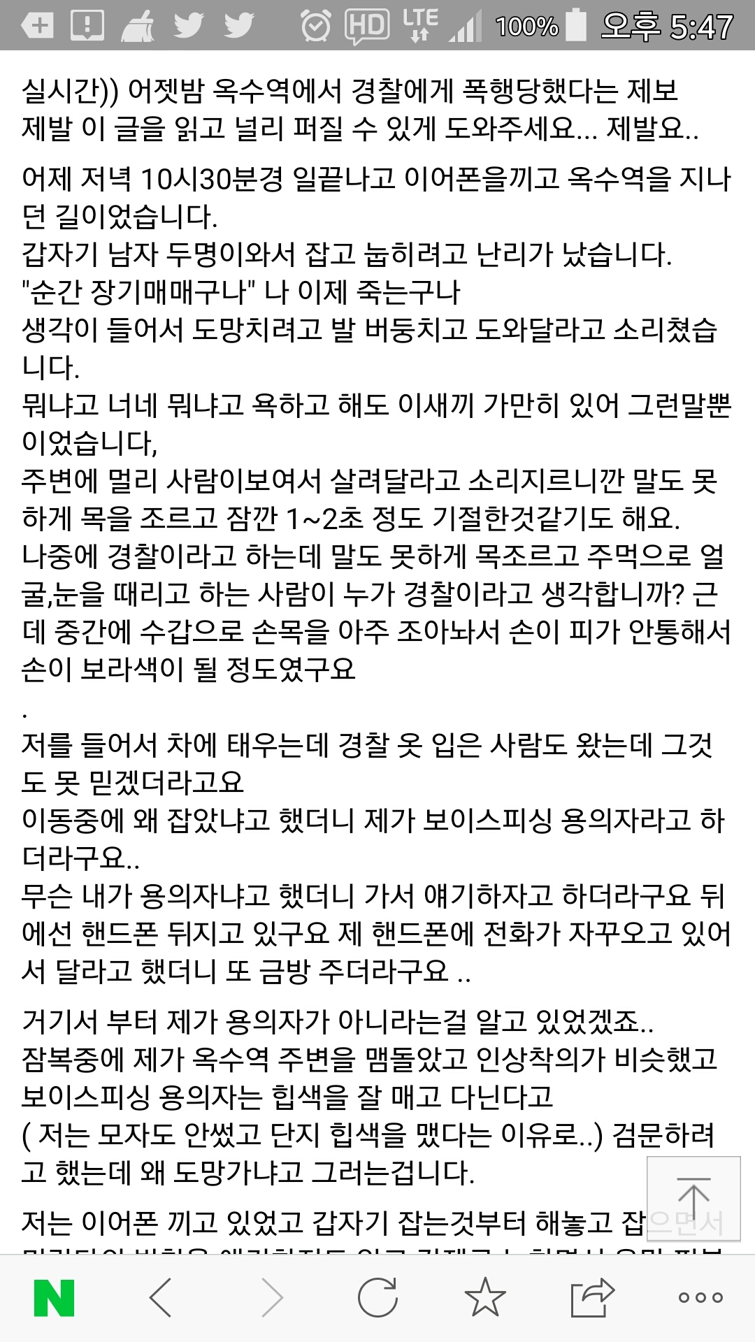 | Subject | 혐주의)엉뚱한 사람 '보이스피싱범'으로 알고 다짜고짜 폭행한 경찰 |