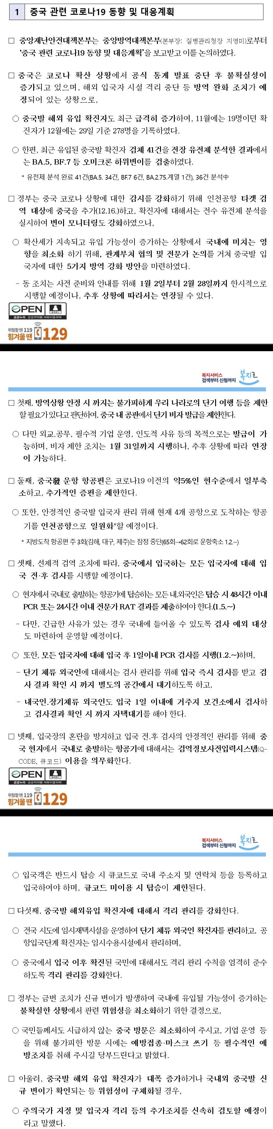 중국의 본격 리오프닝에 추가적인 입국 방역 규제를 하는 국가들도 있고, 기존에 이미 출발국과 관계없이 음성 확인서, 접종 확인서 등을 요구하는 조치가 있어서 따로 추가 조치는 없는 곳도 있고, 그냥 추가적인 대 중국발 입국 규제는 안 하겠다는 나라들도 있는데, 우리나라는 일단 요렇게 한다고 합니다.