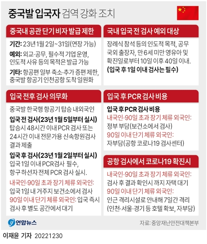 중국발 단기비자·추가증편 제한…입국 전후 검사 의무화(종합2보)