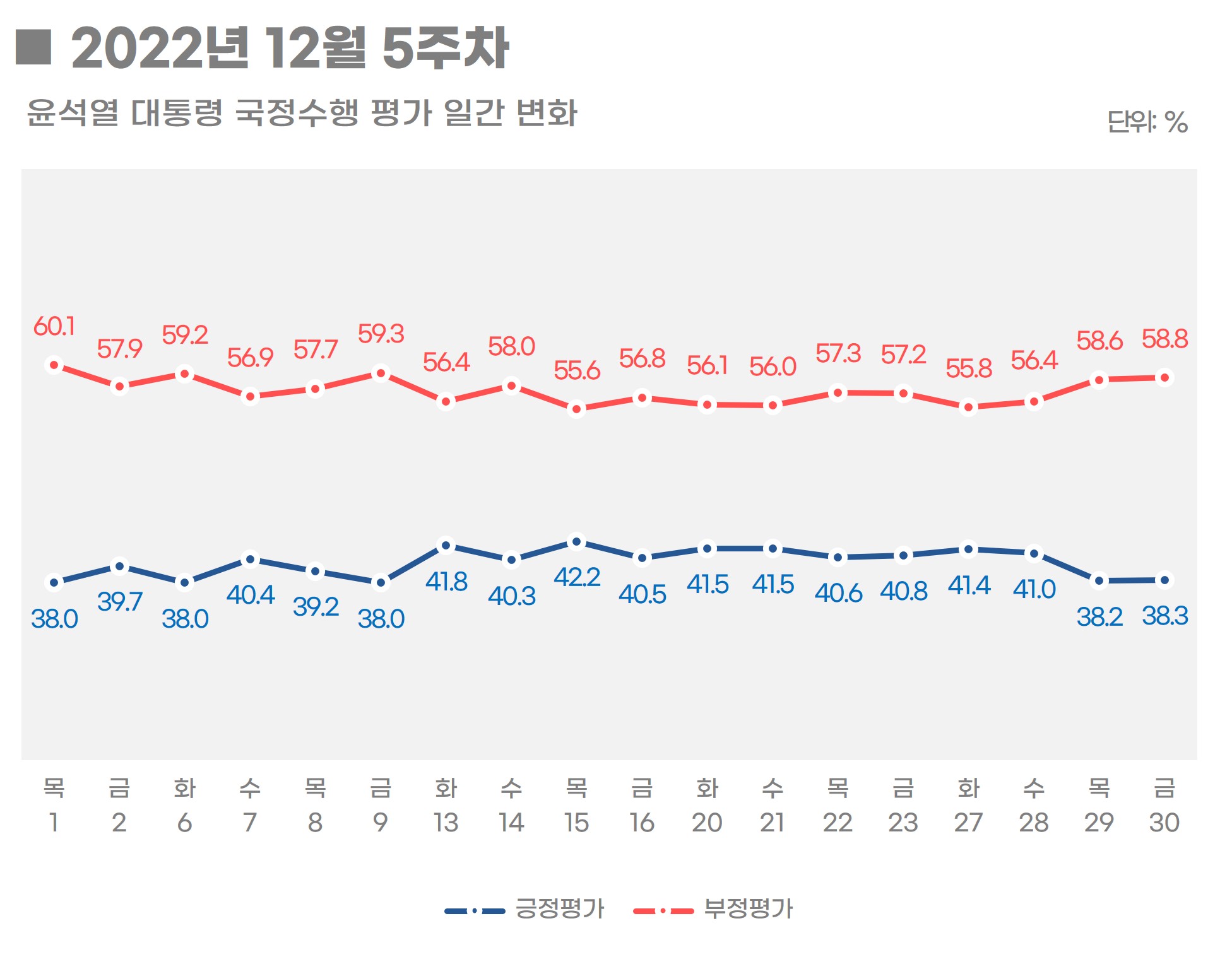 尹 지지율 40.0%, 3주만에 하락... "北 무인기 부실대응 탓"
