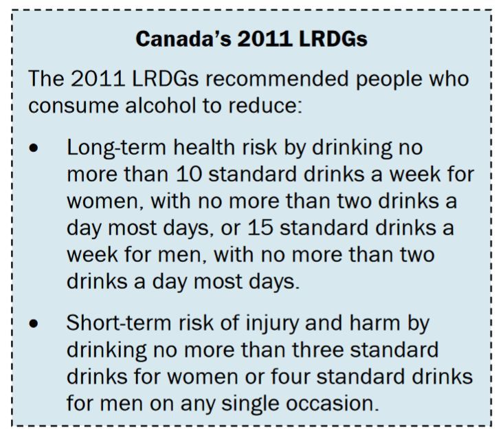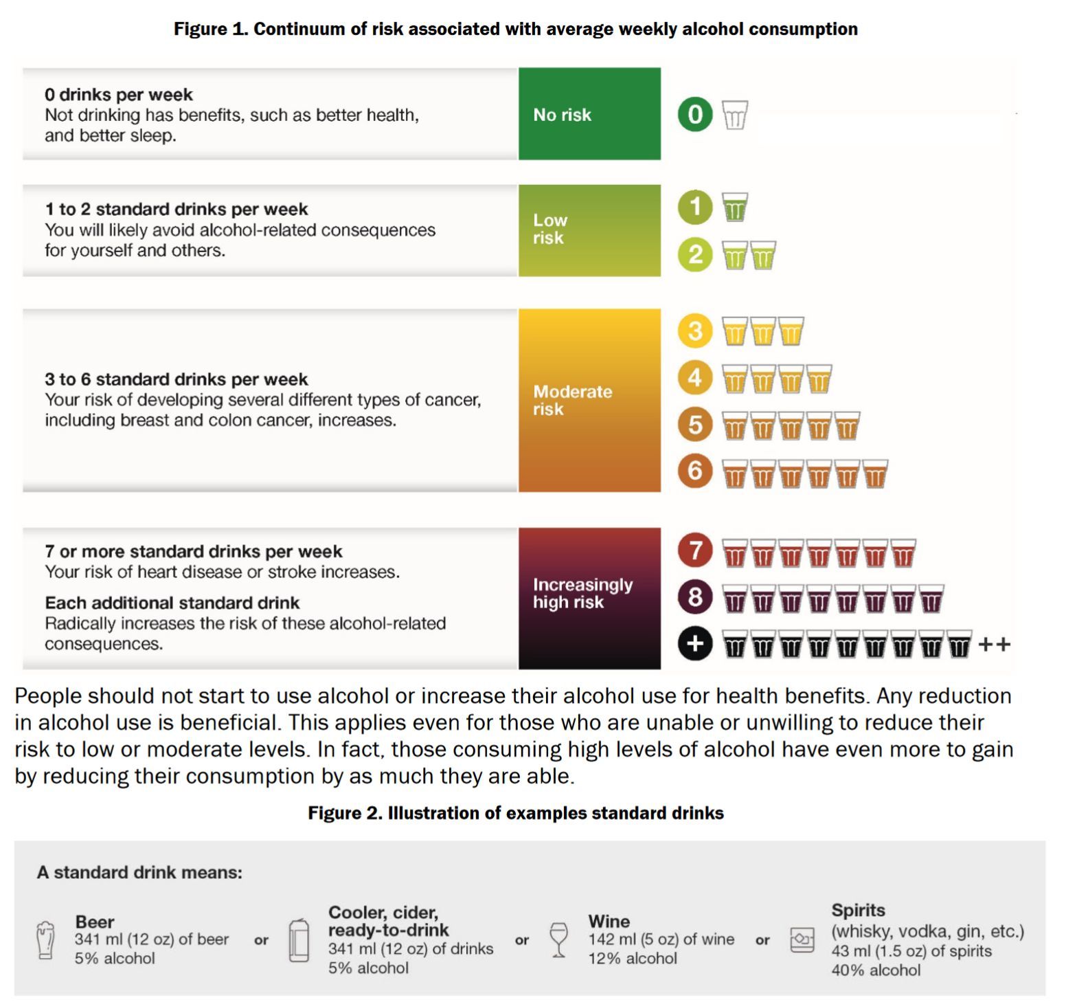 https://www.yna.co.kr/view/AKR20230119056800009 https://ccsa.ca/sites/default/files/2023-01/Canada%27s%20Guidance%20on%20Alcohol%20and%20Health%20Final%20Report_l.pdf https://en.wikipedia.org/wiki/Standard_drink 2011년 권고에 비해서 많이 강화되었군요. 한글 기사의 주 15회, 주 10회 얘기는 스탠다드 드링크 기준입니다. 나라마다 스탠다드 드링크에 차이가 있습니다. 0