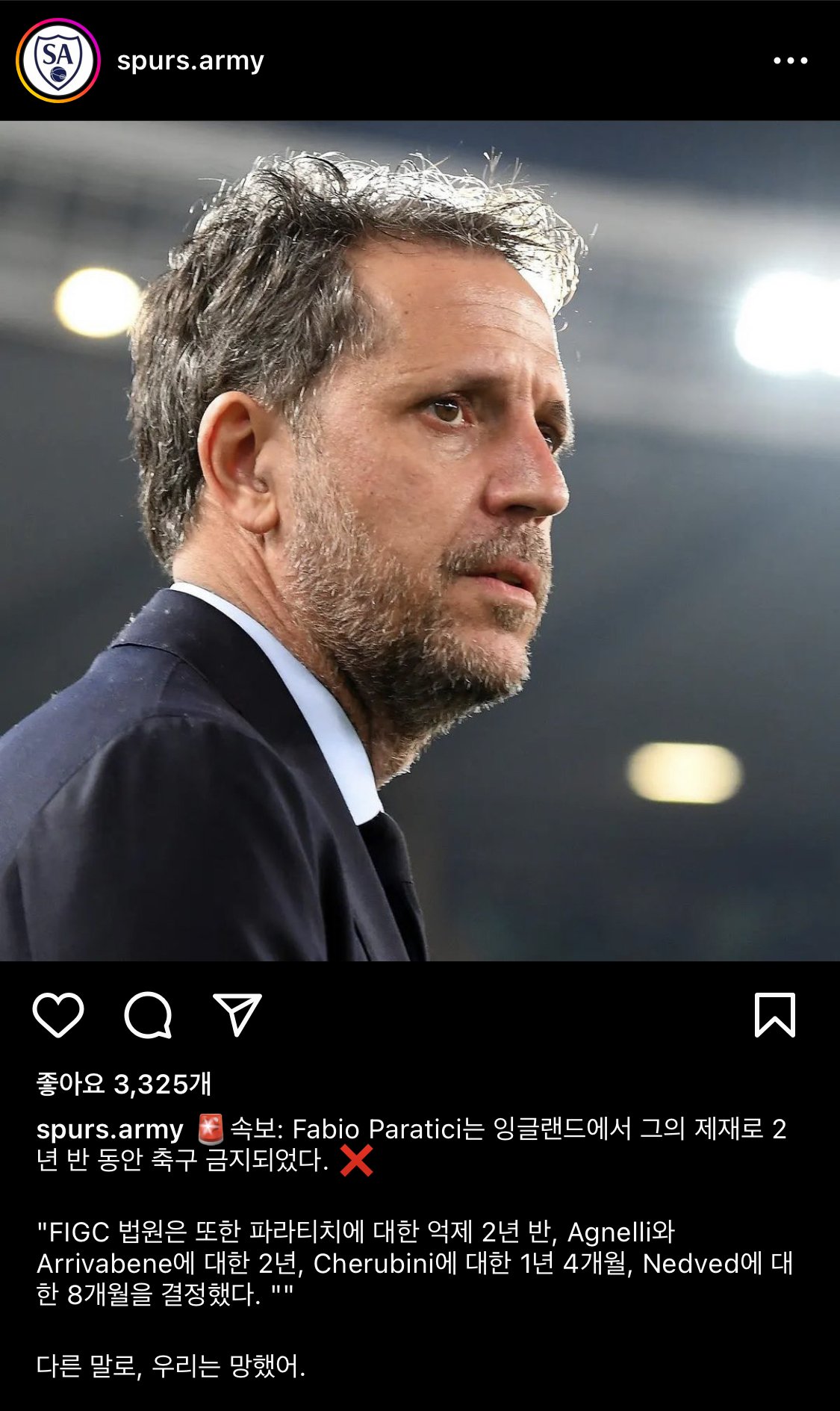 스포츠'겨울 0입' 토트넘, 파라티치 단장도 잃나...30개월 직무 정지 위기 3 |