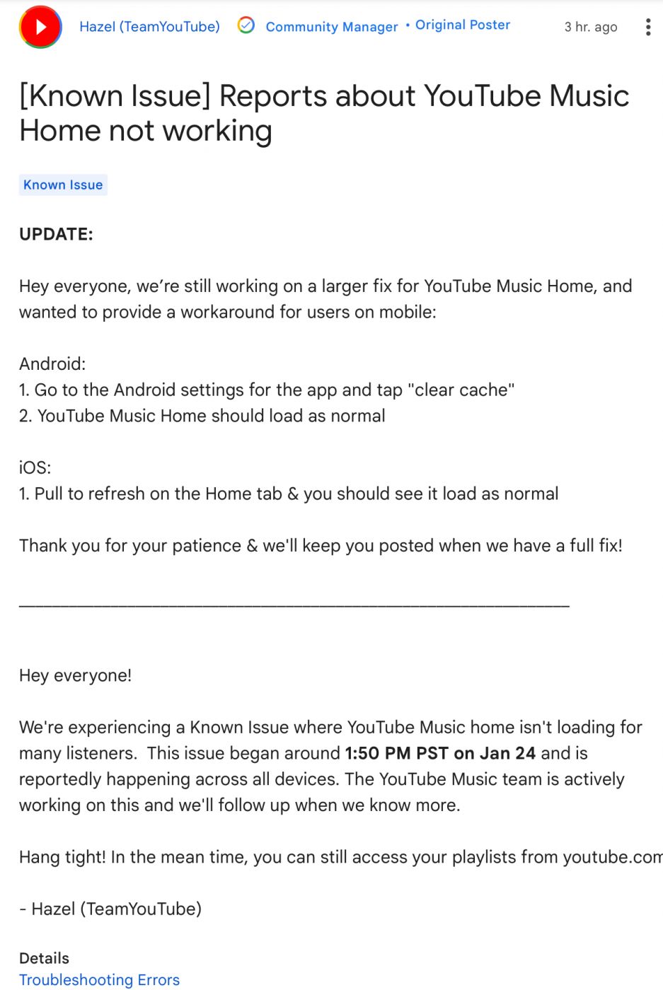 https://m.yna.co.kr/view/AKR20230125019800017 https://support.google.com/youtubemusic/thread/198792591 안드로이드는 앱 셋팅에서 캐시 제거 iOS는 홈 탭에서 당겨서 리프레쉬 참고하세요. 0