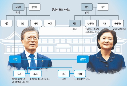 http://v.media.daum.net/v/20170510050204956 문 후보는 2003년 노무현정부 청와대 민정수석으로 일할 때부터 친인척 관리에 특별히 신경을 썼던 것으로 전해졌다. 첫째 처남은 국민일보 기자와 만나 “매형(문 후보)이 청와대에 들어갈 때 ‘너는 정치에 발을 딛지 말고 네 일만 열심히 하라. 모든 권력형 비리는 친인척, 특히 처남으로부터 나온다. 특히 조심하라’고 당부했다”고 전했다. 첫째 처남은 “처음에는 (매형이) 청와대에 들어가 자랑을 했는데, 주변에서 중요한 일 부탁이 들어 왔다”며 “그래서 이후부터는 사람을 잘 안 만났고, 이젠 아주 가까운 주변 사람들도 내가 재인이형 처남인 걸 모른다”고 했다. 또 “우리가 각자 맡은 일을 하고 조용히 사는 게 매형을 도와주는 일이라 생각해 아이들한테도 고모부에 대해 말하고 다니지 말라고 조심시켰다”고 말했다. 둘째 처남 역시 “별다를 게 없는 평범한 가족이다. 명절 때 통화하지만 웬만하면 피한다”며 “(매형이) 좋은 사람인데 괜히 다칠까봐 걱정돼서 그렇다”고 했다. 처남들은 한결같이 문 후보에 대해 “노잼(재미없다)”이라고 평가했다. 첫째 처남은 “평상시 매형은 자기 할 얘기만 딱하고 그런다”고 했고, 둘째 처남도 “가족으로는 더할 나위 없이 좋은데 재미는 없다”고 했다 노잼통니뮤... 0