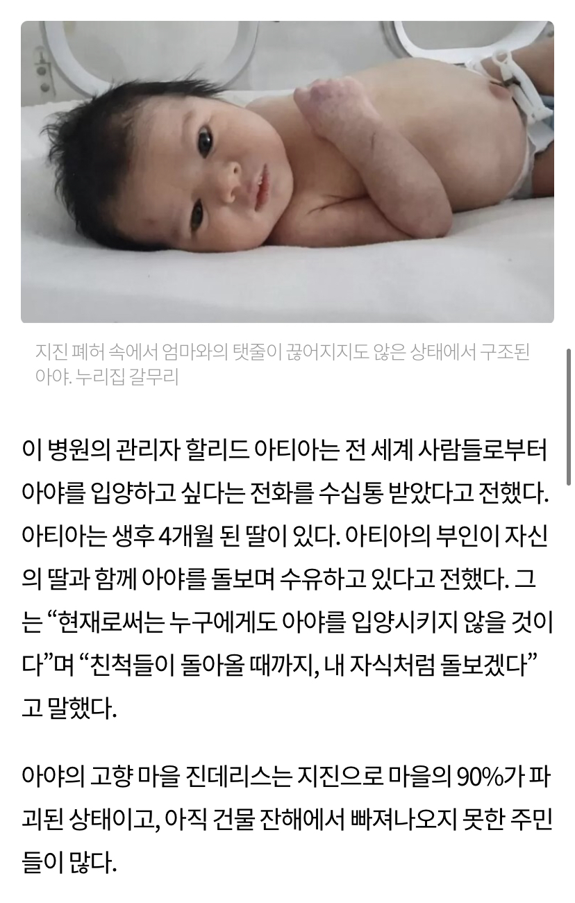 | Subject | [튀르키예 강진] '폐허 속 기적' 신생아에 "입양하겠다" 수천명 문의 |