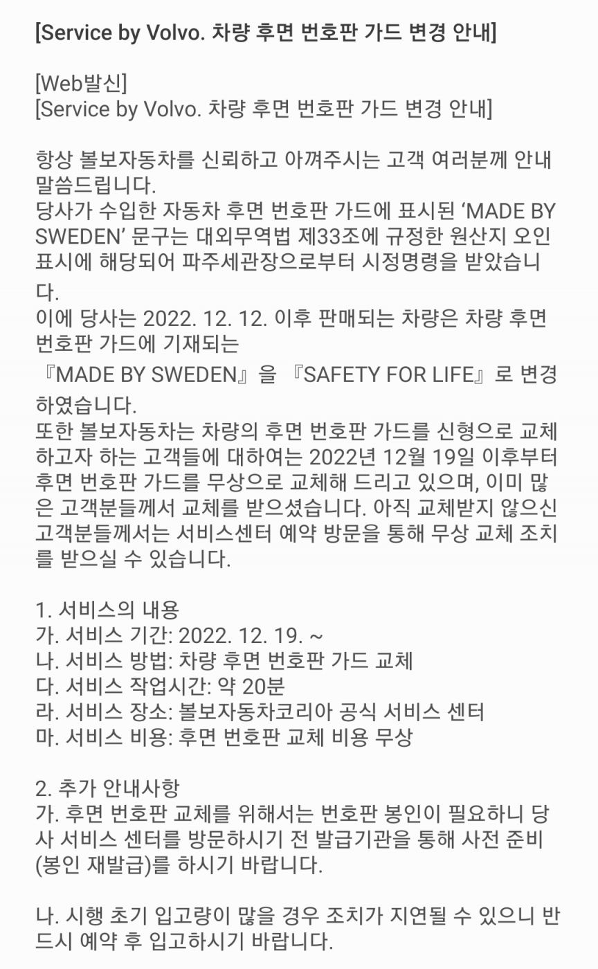 경제중국산이 왜 '메이드 바이 스웨덴'...원산지 오인 우려 볼보차 번호판 가드 바꿔라 6 |