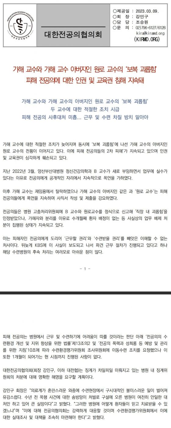 사회양산부산대병원 '父子 교수' 전공의 괴롭힘 논란…2차 가해 호소 7 |