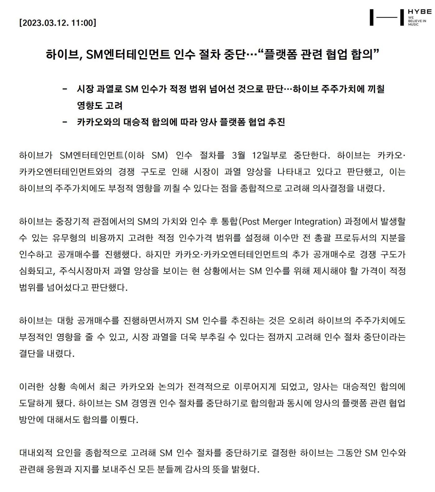 경제SM 인수전 타결…카카오는 경영권·하이브는 플랫폼 협력(종합) 2 |