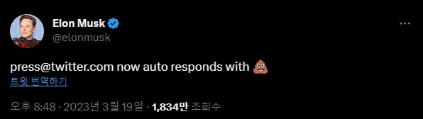 IT/컴퓨터트위터는 커뮤니케이션 팀을 해고한 지 몇 달 만에 모든 언론사 이메일에 똥 이모티콘 한 개로 자동 응답합니다. 7 |
